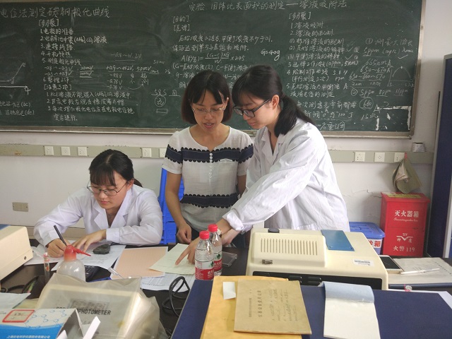 正所谓实践是检验真理的唯一标准,化学的乐趣及惊奇亦在于其美丽纷繁的实验。比赛过程中,同学们本着专业的素养、严谨的态度,拿起手中的烧杯、试管、漏斗、天平等仪器进行称量、搅拌、溶解、加热、提纯等操作,手法娴熟敏捷。组装复杂仪器、控制温度、蒸馏提取,溶液配制、润洗取液、滴定观变,同学们用自己的耐心及技能证明了他们的真正水平。选手的脸上时而紧蹙眉头,时而神态严肃,手上动作有条不紊,一步一步将实验步骤做得有序精准。最终,14级化学专业的的黄蓥、叶艺玲、林生同学及14级应用化学专业的陈超龙同学以优秀的成绩分别获得师范组、非师范组一等奖的好成绩,并有8名同学获得二等奖、13名同学获得三等奖。