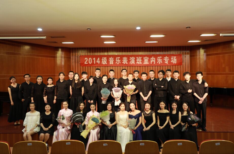 5月24日晚,音乐学院2014级音乐表演班室内乐作品音乐会——“韵律”在演练厅成功举办。本场音乐会是由2014级音乐表演班全体同学精心策划,历经三个月的辛苦排练才完成的,音乐会吸引了上百名观众前来观看,大家都期待不已。