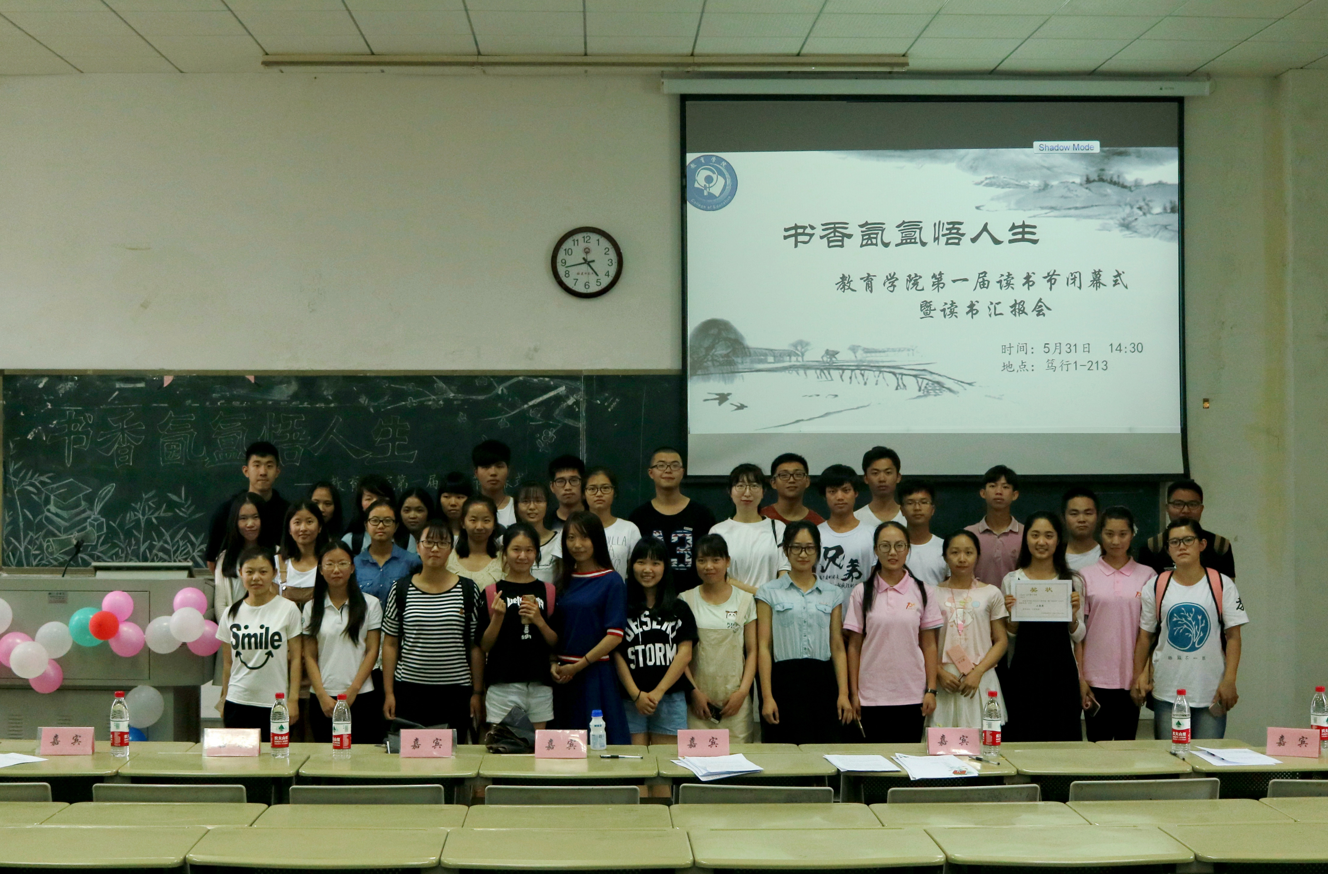 5月31日下午2点30分,由院学习部主办的教育学院第一届读书节闭幕式暨读书汇报会在笃行1-213顺利举办。担任本次活动评委嘉宾的有院党委副书记雷虎强、学院各学系教师等9位老师。
