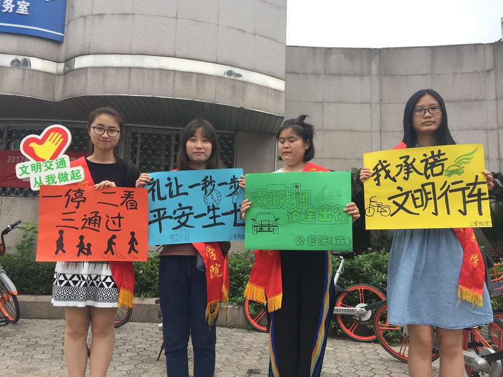 2017年5月21日下午,公共管理学院青年志愿者协会在仓山校区通过举牌和制作展板、张贴海报等多种形式,开展了以“遵守交通法规,共创安全校园”为主题的交通安全知识宣传活动。