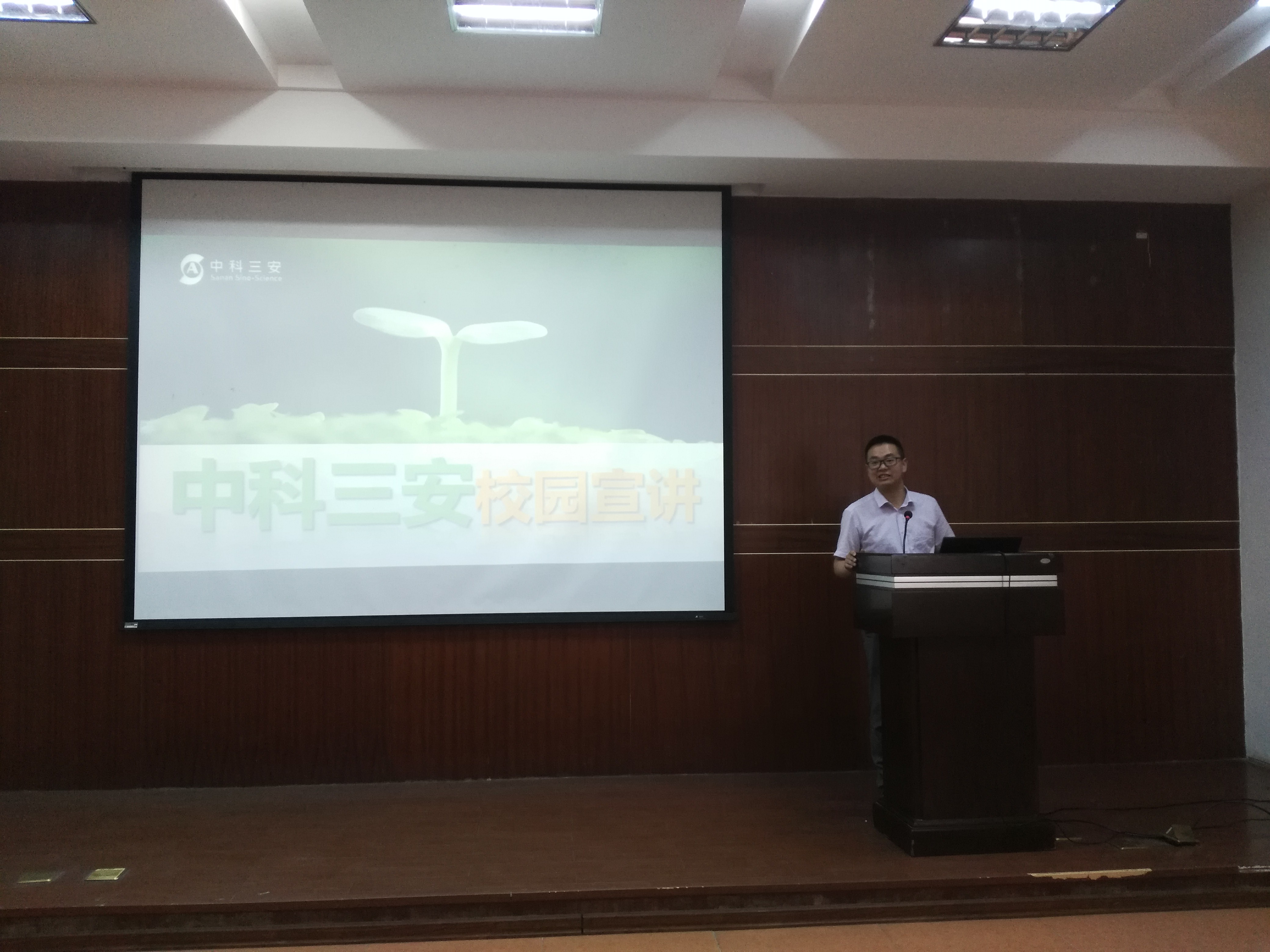 为推进落实生命科学学院2017届毕业研究生就业,为2017级研究生毕业生提供更广阔的就业空间以及就业前景。2017年5月22日下午,生命科学学院联合福建省中科生物股份有限公司在理工11号楼103学术报告厅举行专场校园宣讲招聘会。本场招聘会很荣幸的邀请到了中科院博士生导师容明强研究员,中科三安集团廖恭杰经理作为宣讲嘉宾。院党委书记余培雄,学院团委书记陈晓峰老师亲临本次招聘会进行现场指导工作。本次招聘会吸引了来自生命科学学院各个专业的研究生前来听讲并投递了简历。
