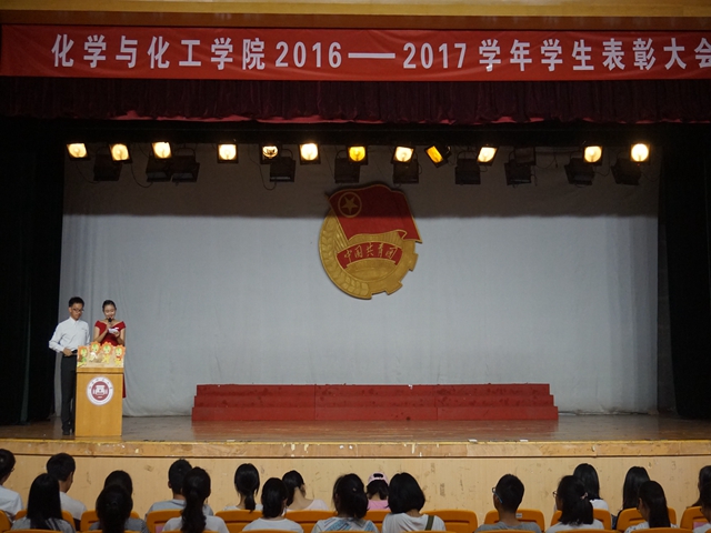5月24日,化学与化工学院于旗山校区青春剧场隆重举行了2016-2017学年学生表彰大会。院党委书记兰玉清老师,校后勤集团副总经理、原院党委副书记翁国柱老师,院关心下一代委员会主任张永祥老师,院工会主席吴阳老师,院党委办公室副主任朱丹老师,院行政办公室副主任翁荔丹老师,院团委书记、2014级辅导员张娴老师,辅导员郑伟倩老师、陈强老师、林文松老师,班主任付丽老师、徐刚老师以及化学与化工学院全体学生共同参加了本次大会。
