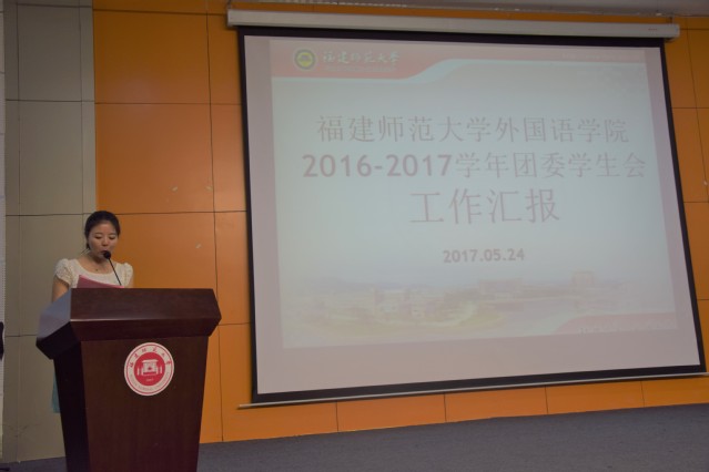 接下来进行的便是外国语学院2016-2017学年团委学生会工作汇报。汇报分为七个阶段,分别是:思想引领(团副、组织部、宣传部),为你服务(青协、实践部),文武双全(文娱部、体育部、心协、女生部、社团部),学风建设(学术部、学习部),媒体宣传(新媒体中心、新闻中心、广告部),生活保障(办公室、生劳部、治保部)和主席团。汇报有序进行,每个代表向大家展示本学年自己部门的学生工作,无论多么繁琐,他们都用意念坚持下来并做到最好。随后他们还总结了不足,向下一学年要上任的学弟学妹传授了宝贵经验,并纷纷表达了在外院团委这个大家庭学习成长了很多,正如学生会主席卞婕所说,和大家相遇是每个人的小幸运。