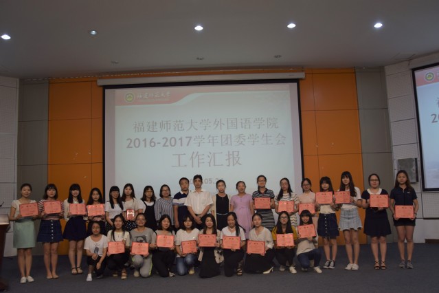 2017年5月24日19:00,外国语学院第九期大学生骨干培养班结业仪式暨外国语学院2016-2017学年团委学生会工作汇报会于仓山校区外国语学院多功能厅举行。院党委副书记李启辉老师,院团委书记谢晶老师,本科生辅导员林芙蓉老师、范阳阳老师、徐昕旸老师,研究生兼职辅导员吴香玲老师、院团委学生会主席团成员以及大学生骨干培养班全体学员参与本次活动。