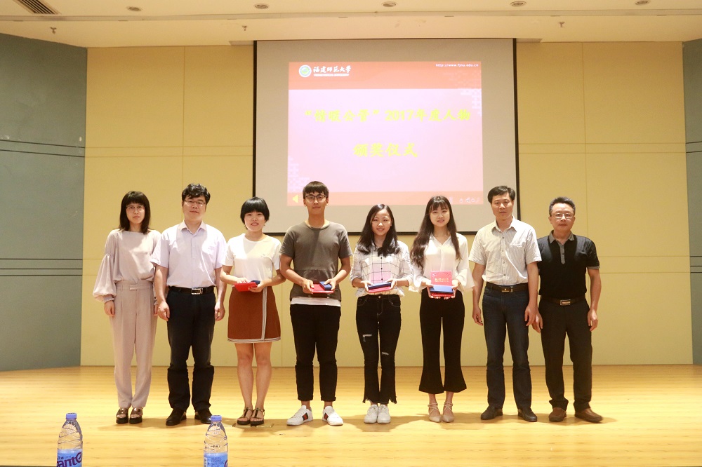 第二阶段进行的是“情暖公管”2017年度人物颁奖典礼。经过班级推优、评审小组初步筛选、民主测评选出“情暖公管”年度人物和年度人物提名各五位。张延君老师凭借严谨科学的教学态度、独树一帜的教学方法深受同学的喜爱,严文婷、范海林、黄移华三位同学在学生工作上奉献与坚守、杨思思同学在志愿服务上积极主动的作为,获得师生普遍认可,成为“情暖公管”2017年度人物。此外,侯西安老师和郭秀玲、黄雷、姚家伟、黄增献四位同学获提名奖。
