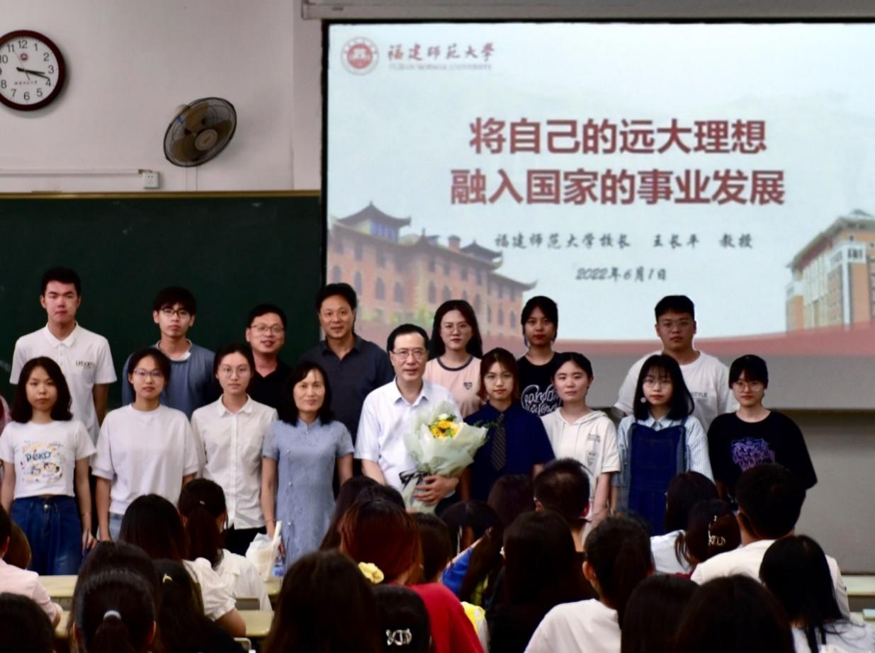 6月1日下午,王长平校长在旗山校区立诚1-106教室,为法学院2021级本科生上了一堂题为《将自己的远大理想融入国家的事业发展》的思政课。